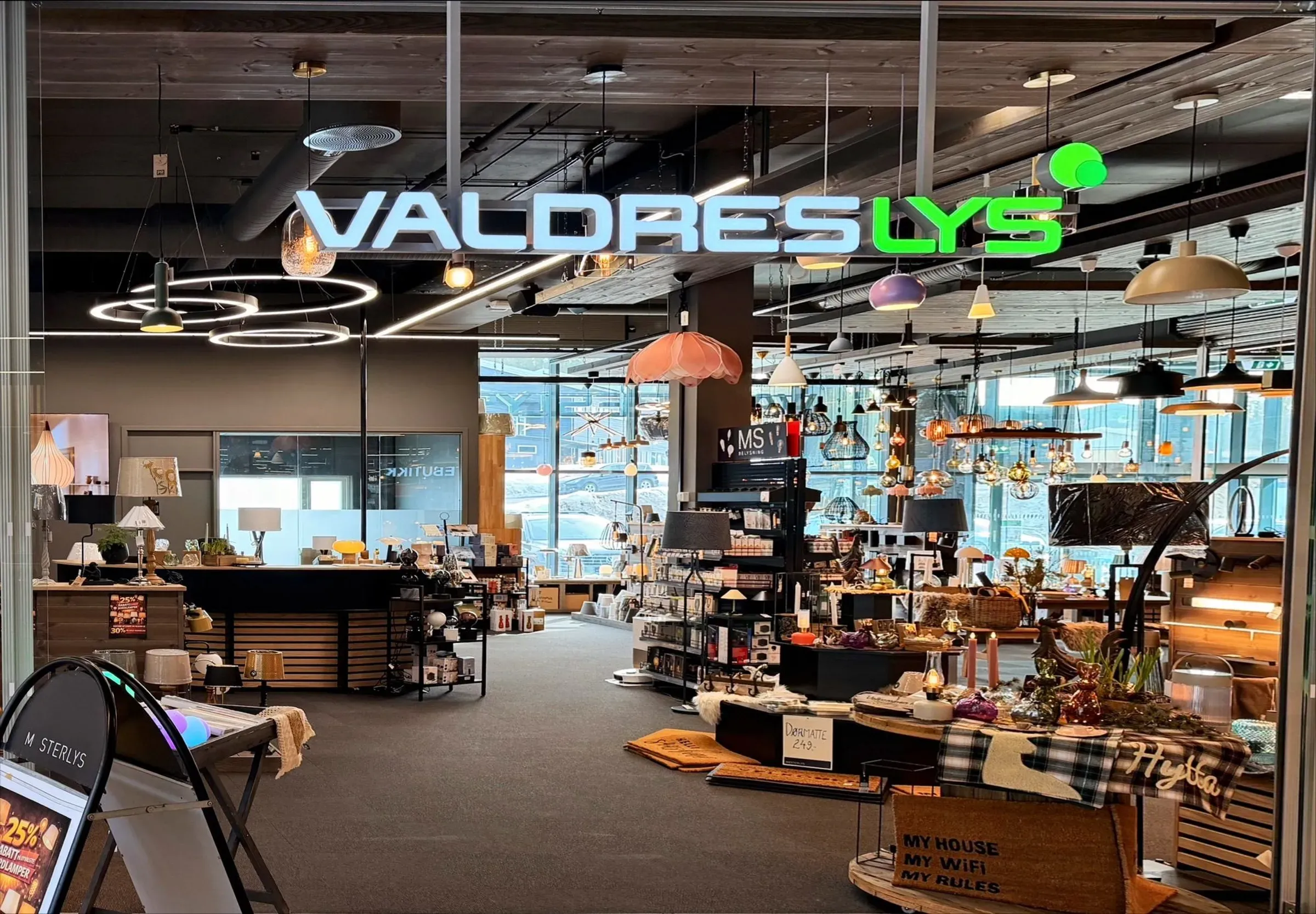 Velkommen til lampebutikken hos Valdres Installasjon – et inspirerende showroom med belysning til både bolig og hytte.